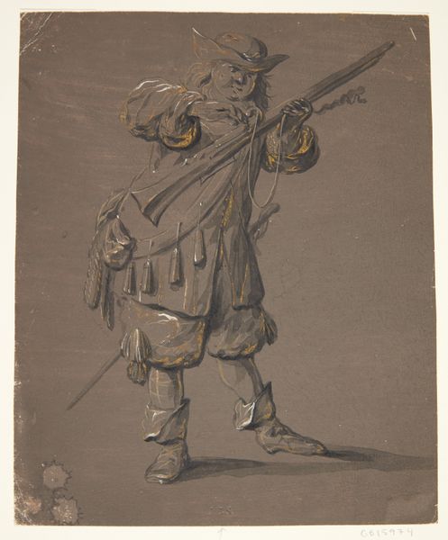 Curator: The subject of our attention today is Giuseppe Signorini's 1878 work, "A Moorish Soldier before a Sunlit Wall," likely executed in watercolor and oil. The blend creates such intriguing textures, what's your immediate take on it? Editor: My first impression is one of quiet confidence tinged with a hint of melancholy. The Moorish soldier's stance—poised yet relaxed against that luminous wall—speaks of someone guarding a place, or perhaps memories. Curator: Precisely. The composition echoes Orientalist themes popular at the time, yet Signorini adds a depth that moves beyond mere exoticism. Observe the choice of weapons—the dagger, the firearm. These aren't simply props; they communicate power and, maybe, anxiety about maintaining that power. Editor: I agree. And look at how the light falls. The wall behind him seems to glow, almost like a halo, yet his face is partially shadowed. Is Signorini suggesting an internal conflict, a wrestling with identity or duty in a changing world? It plays into the power dynamic. Curator: A fascinating suggestion. Culturally, this piece arrives at a moment of intense European engagement and colonization in North Africa. Signorini, through this lone soldier, might be questioning the romanticized narratives and delving into the human cost. Notice the meticulous rendering of the clothing versus the loose brushwork of the wall; such a juxtaposition gives a feeling of timelessness, of both belonging and transience. Editor: Absolutely. That bright wall serves as both backdrop and almost as another character, emphasizing the sense of isolation. I also appreciate how Signorini doesn't present a purely heroic figure. The slightly downcast eyes and relaxed hand hint at a weariness, adding an accessible human dimension to the portrait. This work, it seems, gives us access to collective memory, it triggers ideas beyond a first, quick appraisal. Curator: A truly nuanced approach. It reminds us how symbols, in the right hands, transcend their immediate context to touch on broader themes of identity, conflict, and the lingering echoes of cultural encounters. Thank you. Editor: An enlightening look into history, filtered through the artist's perspective and into the public sphere. Thank you, as well.