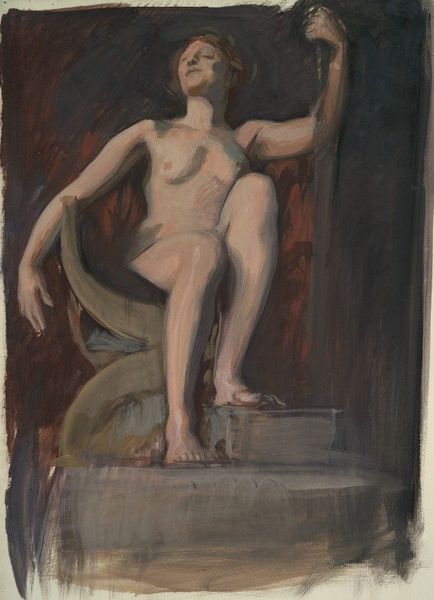 Editor: This is Jacek Malczewski’s "Study of a classical sculpture," painted in oil paint. It strikes me as a very deliberate, almost academic approach to depicting form. What's your take on this work? Curator: It's interesting to consider the labour involved in this "study." Malczewski isn’t simply capturing an image. He’s actively participating in a historical discourse. Consider the layers of production: the original sculptor's labour to produce a classical form, then Malczewski meticulously reproducing that in paint. It begs the question: what new meaning is created through this act of replication and consumption of historical styles? Editor: I hadn't thought about the repetition of labor, the copy of a copy. Does the choice of oil paint then, further emphasize the layers of production due to the time-consuming process and techniques? Curator: Precisely. Oil paint allows for layering, for revisions, and thus, further embeds Malczewski's process and the very concept of "study" into the work. It moves away from capturing immediate likeness. Look also at the visible brushstrokes - they assert the artist's presence and challenge a purely mimetic approach. How does that interplay between representation and the act of painting shape your interpretation of this artwork now? Editor: I see it as drawing attention to the labour, moving from the initial sculpture and instead towards the skill and craftmanship of Malczewski, who seems to highlight that labor in its making, his visible mark and skill. Thanks for sharing! Curator: Indeed. It is through an analysis of production that we truly understand how meaning shifts and evolves through artistic practice and historical and societal viewpoints.