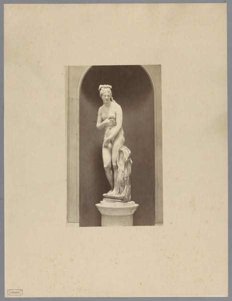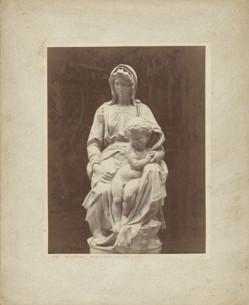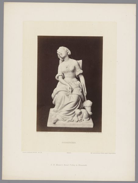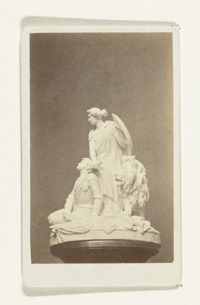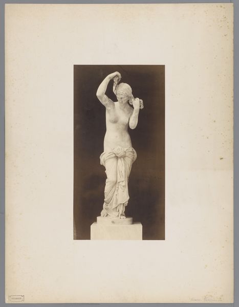 Curator: Before us, we have Antonín Pavel Wagner's marble sculpture, "Sculpture of a Personification of the Continent Africa," estimated to have been created between 1875 and 1900. Editor: It’s quite striking, this allegorical figure. A female figure with distinctly Egyptian headwear seated beside a pharaoh’s head. It carries an air of ancient grandeur and exoticism, doesn't it? Curator: Absolutely. The academic style, the choice of marble—it speaks volumes about 19th-century artistic production. We see this object as a finished product, but think about the quarry, the tools, the labor… Editor: While the means of production are interesting, consider how Wagner deploys powerful symbols. The headdress and placement beside the pharaoh create a clear visual link with ancient Egypt and royal authority. Doesn’t this immediately trigger associations with wisdom and timeless power? Curator: Indeed, it positions Africa through a very specific lens. It also brings up the complicated history of how Europeans defined other cultures in the 19th century through the industrial production of images and objects, and these ideas then gain power from repeated representation in art and culture. Editor: A Western lens, undeniably. This work reinforces European fascination with an imagined, timeless "Africa." It reminds us how artistic representation shaped, and continues to shape, cultural perceptions and perhaps even misperceptions. Curator: Exactly. Marble, revered and valuable, was carefully chosen to imbue the figure with prestige but, it's a world apart from, say, a wood sculpture carved locally within a tradition deeply embedded in the place. Consider how those differences play into value judgements and cultural appropriation. Editor: It’s thought-provoking how symbols of royalty and the Western artistic medium can be used to encapsulate an entire continent in such a way, prompting further questions about what cultural messages such choices deliver. Curator: Considering it from a materialist perspective, it urges us to see this artwork not just as a symbol of Africa, but as a product that had social ramifications and was circulated to solidify ideologies in a certain moment of time. Editor: Indeed. This sculpture offers a compelling glimpse into history, revealing the complex interplay of artistic symbolism and cultural construction. Curator: And by studying its creation and the materiality behind it, we’re invited to analyze its production as a social artifact that tells the viewer more than one story.