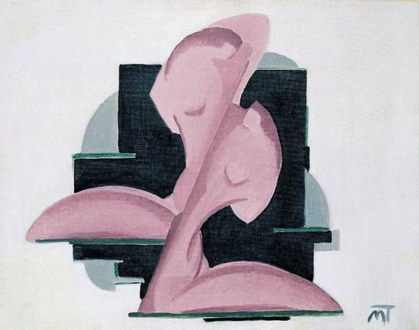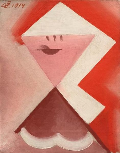 Curator: Josef Capek’s pastel on paper artwork from 1916, "Děvče v koŠili," offers an intriguing take on portraiture. Editor: My first thought? Restrained elegance. The soft lilac hues and the economy of line—there's almost a monastic quality to the composition despite the clear nod to art nouveau. Curator: Indeed. Capek distills the essence of the subject down to geometric forms and subtle color gradations, aligning him with Cubist principles but always filtered through an unique sensibility. He blends modern modes with the sensibility and nostalgia of past artistic ages. What do you read in it? Editor: I see a very tactile approach, surprisingly so for something labeled Cubist. Look at the texture—you can almost feel the powdery softness of the pastel on what seems like coarse paper. I am more keen on understanding what dictated Capek's choice of materials, what led him to pastel over more traditional painting. Was there scarcity? Accessibility? A material inclination? Curator: The pale hues certainly enhance the psychological depth. There’s a dreamlike quality; the reduction of form pulls it away from pure representation into something symbolic. Her downward glance adds an air of introspection and interiority, especially when so much else has been removed. It’s a memory more than a portrait, perhaps. Editor: Perhaps. I think about labor and class, and what Capek may be subtly commenting on about representation. While "high art" favors oil and bronze, were more modest media the province of the less privileged or simply deemed less important, of another order of art? We are still trying to establish criteria by which to consider and value creative and material outputs... Curator: It is a hauntingly beautiful and complex portrait, open to many layers of reading and interpretation. Editor: Indeed. And perhaps what strikes me most is not what we see, but what Capek has intentionally withheld, prompting a discussion about what elements signify "art," who assigns that significance, and by what right?