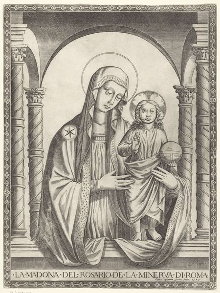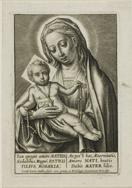 This engraving of the Virgin and Child, made by Michel van Lochom in the 17th century, presents us with a powerful image of maternal love interwoven with spiritual devotion. Note the rosaries held by both figures, symbols of prayer and the mysteries of faith. The rosary, a string of beads, has ancient roots, appearing in various forms across cultures as a tool for meditation and spiritual practice. In Christianity, it evolved into a symbol specifically associated with the Virgin Mary, acting as both a devotional object and a tactile reminder of the prayers dedicated to her. Consider, the Lokesvara depictions in Buddhist art from centuries earlier. Like Mary, they symbolize boundless compassion. The continuous loop of the rosary mirrors life's cyclical nature, its beads marking moments of reflection, guiding us through life’s trials. This visual representation embodies an eternal cycle, reflecting how symbols evolve and adapt across time.