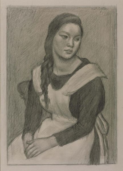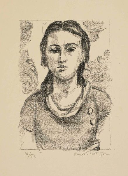 Curator: Here we have Henri Matisse's "Bust of a Young Girl, Arms Crossed," a print dating to 1925. Editor: It’s remarkably understated, isn’t it? The young woman's posture suggests a certain pensiveness. You immediately notice the artist’s economical use of line. Curator: Absolutely. While known for his vibrant color, here Matisse explores the power of simplicity. Pencil, as a medium, enjoyed rising popularity with the rise of print media. We are seeing its democratizing effects, enabling broad, and cost effective, reproductions of drawings such as this one. Editor: Indeed, it's a study in reduction. It makes me think about the physical process. He’s almost sculpting the figure with the graphite, layering the strokes to build depth and shadow. Look at the rendering of her dress; it's a dense weave of lines. I wonder how many impressions were produced from this. Curator: As the inscription at the bottom indicates, this is the 31st from a limited run of fifty prints. These small runs kept the prices reasonably high for a pencil and paper reproduction, while also conveying some level of scarcity and therefore perceived value. Editor: You can almost feel the texture of the paper through the lines. And those crossed arms—it's a gesture that simultaneously feels vulnerable and defiant. Were many other copies reproduced and disseminated? Were they hand-distributed, for example, between students? The artist must have considered his audience to be a group keen to collect an intimate and domestic depiction like this one. Curator: Well, that’s the intriguing question, isn’t it? While Matisse was gaining international recognition, prints like these also served to connect him with a broader audience through print markets and, most certainly, private collecting circles. Editor: This brings a fresh intimacy to an artist typically associated with bold colors and luxurious interiors. I appreciate how much it reveals about process and his mastery of humble materials. Curator: A testament to the versatility of a master, and the surprising depth that can be achieved through minimal means. Editor: A truly telling example about the ways in which material and access impact not only creation but the way in which we can experience a work like this today.