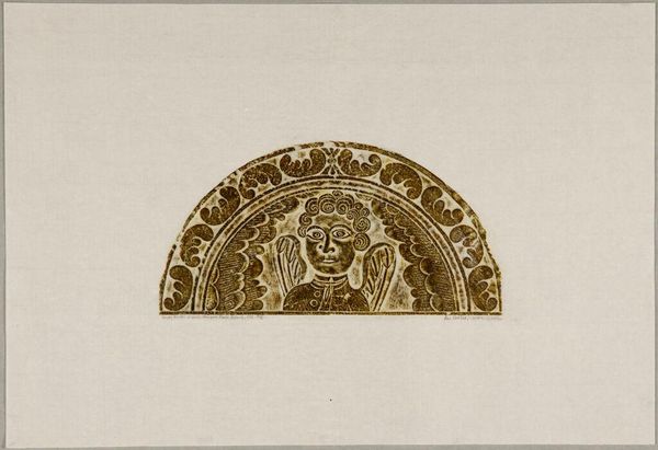 Editor: Here we have Ann Parker's, David Keyes, Warren, Massachusetts, 1761. The figure seems to be emerging from an architectural structure. What cultural symbols or meanings are embedded within this piece? Curator: Notice the figure's gaze – direct, unwavering. The lunette shape itself often represents a threshold. Given the title references a specific person and place, consider if this is a memorial. What emotions does it evoke? Editor: There is a somber quality. Is it meant to connect the deceased with the afterlife or a higher spiritual plane? Curator: Precisely. The Keyes family was prominent in early Massachusetts. This image may draw upon older, almost totemic imagery, to connect personal identity with community history and perhaps the eternal. Editor: So, it's a blend of personal and collective memory, rendered through symbolic forms. Curator: Indeed. A potent combination of individual remembrance and enduring cultural symbols.
