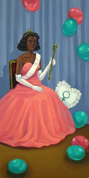 Amy Sherald made this striking portrait called *Welfare Queen* and I'm immediately struck by the way she uses colour to make you think. The bold red background is almost like a stage, setting the scene for the figure. Look at the figure's face, how Sherald paints the skin tones in grayscale, which is such a powerful choice. It flattens the image but also brings a level of abstraction, making you focus on the other colours and the composition as a whole. There's something so regal about the way she's painted, yet the title throws a curveball. It's like Sherald is asking us to question our assumptions and the stories we tell about people. The dress is gorgeous, those brushstrokes create a sense of movement and depth. You see some of the same ambiguity in Barkley Hendricks' portraits. They share the same way of playing with ideas of identity and representation, making you think about who gets to be seen and how. It's not about fixed meanings; it's about opening up conversations.