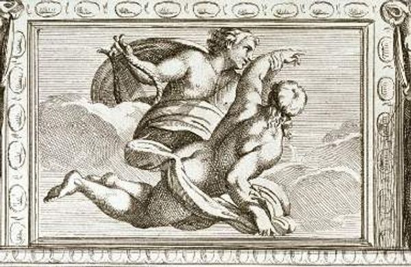 Curator: This is John Flaxman's Illustration to the Odyssey, executed in 1793. The medium is ink on paper. Editor: Immediately, I'm struck by the stark linearity. The scene is frozen, almost weightless, as if rendered from a memory. There is such raw energy captured. Curator: Indeed. Flaxman's style, while rooted in Neoclassical ideals, exhibits an innovative use of line to define form and narrative. Observe how minimal shading and tonal variation force us to focus on contour and composition to grasp the unfolding scene. Editor: And those contours feel surprisingly modern given the late 18th century timeframe. How was the materiality—the paper and ink—important to the final product here, do you think? Was anything specific ordered or specially made for this piece? Curator: Flaxman seems primarily interested in achieving graphic clarity rather than exploiting the tactile qualities inherent in ink or unique handmade qualities, which points to printmaking’s influence here, as it was originally engraved. He streamlines Homer, presenting classical themes to a wider, largely middle-class audience—it became vastly popular! Editor: The composition lends itself well to mass production with this stripped down sensibility and reliance on simple materials like ink on paper. The stark contrast accentuates the epic struggle, underscoring the hero's journey through purely representational form, though. No sentimentality, just form. Curator: Flaxman consciously abstracts forms into planar surfaces which can remind us of ancient pottery painting, effectively distilling the myth to its most essential narrative and compositional structure. I find his formal economy deeply affecting here. Editor: Well, for me, the formal abstraction invites more people into these grand classical narratives precisely because they feel modern and widely produced through an innovative process of making. These stories become much more relevant because their accessibility grew during Flaxman’s lifetime. Curator: His lines carry centuries in them. Editor: Exactly, they weave our present and the ancient world into the stories of those materials!