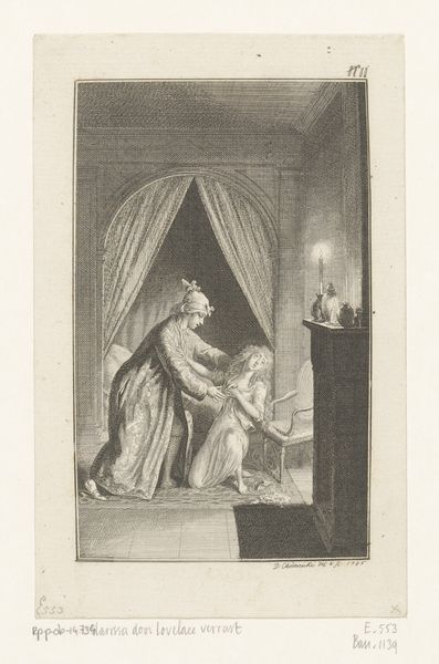 This image, "Mourning Woman, Sitting on a Bed," was made by Adolphe François Pannemaker, who lived in the 19th century. It's a print, likely an engraving or etching. This means Pannemaker would have painstakingly used a sharp tool to incise an image into a metal plate. That plate would then be inked and pressed onto paper, resulting in the image we see. The process itself is crucial to the picture’s impact. Think about the time and labor involved in creating all of those tiny lines, which add up to the overall scene. The material of the print, the paper, also contributes to its effect. The contrast of ink on its surface emphasizes the starkness of the woman's grief. This wasn't simply about artistic expression; printmaking was tied to the rise of mass media and consumption. These images were meant to be circulated, consumed, and perhaps sold. And so, in looking at this image, it's important to consider the social and economic context of its making, challenging traditional notions of art and craft.