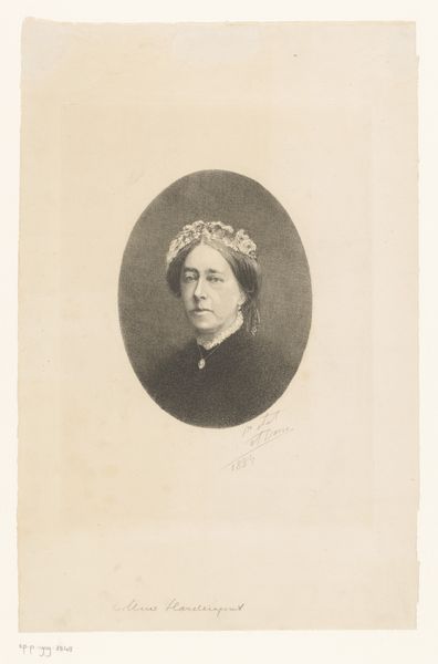 Editor: This is "Portret van mevrouw Bodart," or Portrait of Mrs. Bodart, drawn in 1874 by Joseph Schubert. It's a pencil drawing on paper, and it feels very proper, very… reserved. What strikes you when you look at it? Curator: The averted gaze, subtly downcast. Consider the iconography of portraits from this period; direct eye contact signified status, power, a certain social dominance. What then, does this slight withdrawal communicate? Perhaps a carefully cultivated image of modesty? Editor: So you think she’s intentionally projecting an image? It just looks like a regular portrait to me, very typical for the time. Curator: The ruffle details and buttons, precise hair; these weren’t chosen arbitrarily. The artist and subject both likely understood the silent language of attire. Schubert isn’t merely representing; he's encoding. How do the details echo broader cultural ideas about femininity and virtue? Editor: Oh, I see what you mean. Like, is the ruffled dress code, like, “pretty, but not too flashy”? It’s definitely giving demure vibes, for sure. Curator: Precisely. The cultural memory embedded in something like ruffled adornment is fascinating, no? A symbol designed to convey… respectability? Can that visual vocabulary be reimagined? Editor: It's like a visual script that we almost need a key to read sometimes. I never would have thought of that! Curator: Each line and shadow contributes to the narrative. Every choice tells a story. What are the stories told about women in this century? And who gets to tell them? Editor: Food for thought. I guess these “simple portraits” can speak volumes if you know what you’re looking for. Thanks for pointing that out!