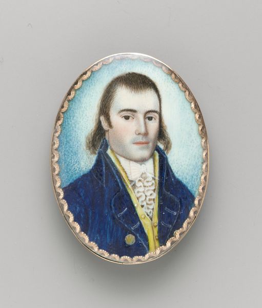 This miniature portrait of Joseph Barrell, Jr., was made by Nathaniel Hancock around the late 18th century. Encased in a locket, this intimate portrait embodies the enduring human desire to preserve memory. The circular frame is not merely decorative, it is symbolic. Throughout history, the circle has represented eternity, wholeness, and the cyclical nature of life. We see it echoed in ancient sun disks and halos of saints, each a variation on the theme of unending return and the divine. The blue enamel, reminiscent of lapis lazuli, lends an aura of preciousness and immortality, invoking the heavens and the infinite. Consider how the locket transforms the man it depicts into a symbolic object, a talisman against the ravages of time. This small, personal object becomes a vessel of remembrance, carrying the weight of emotions across generations. Like an ancient icon, its power lies not only in its beauty but in its ability to evoke powerful emotional responses, connecting us to the past through the enduring language of symbols.