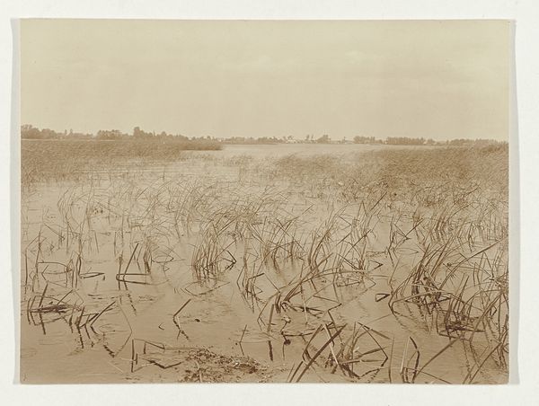 This photograph, "Rime Crystals," by Peter Henry Emerson, presents a quiet landscape of reeds, water, and a distant building under a winter sky. The sun, a focal point, blazes through the fog, its reflection shimmering on the water. The motif of the sun, as a source of light, has been a pervasive symbol across cultures and epochs. Consider the ancient Egyptian sun god Ra, or Apollo in Greek mythology, both embodying power, knowledge, and life-giving energy. In Emerson’s photograph, however, the sun is veiled, its radiance softened by the mist. This evokes a sense of melancholy, a stark contrast to its traditionally potent symbolism. The cyclical nature of light, diminishing in winter only to be reborn, touches our deepest anxieties about mortality. Here, the photograph stirs something primal, a shared human experience of nature's ebbs and flows. This enduring motif surfaces, transformed yet familiar, engaging us on a subconscious level with nature's fundamental processes and cycles.
