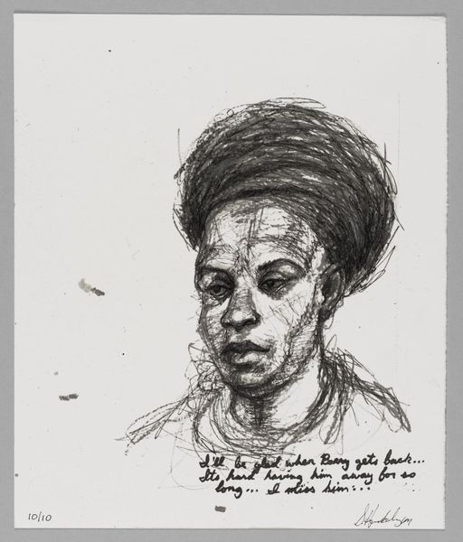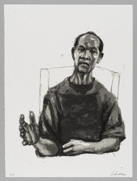 Editor: This is Sedrick Huckaby’s "99% NO.48," a small portrait. The limited palette gives it a somber feel. What symbols or hidden meanings do you find in it? Curator: The portrait's starkness and title, "99%," could symbolize identity and incompleteness. The subject's direct gaze confronts us, carrying the weight of history and resilience. Does the title suggest societal judgment or personal reflection? Editor: It's striking how the title changes my perception. It adds a layer of vulnerability to the image. Curator: Indeed. The artist invites us to contemplate the narratives embedded within the individual, and how cultural symbols shape our understanding.