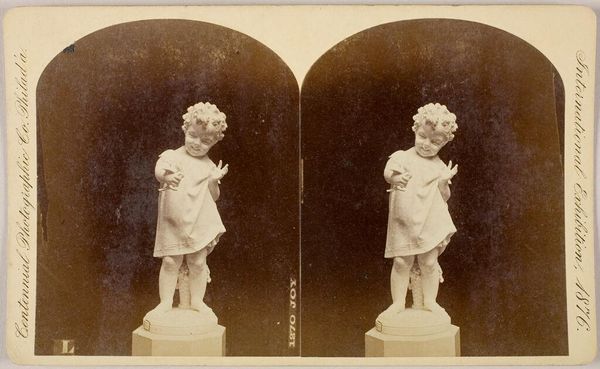 Curator: Looking at this captivating image titled "Sculpture of a Laughing Child's Face after Jtasse," created in 1876, one can immediately perceive the era's fascination with capturing genuine human emotions through art. Editor: It's interesting; my immediate reaction is that the child's smile feels very intentional, almost staged, when looking at the medium used. The materiality of wood presents this solid and static nature, that makes the fleeting quality of the laughter presented feels rather heavy somehow. Curator: Absolutely. This sculpture reflects a broader cultural interest in Realism, aiming to represent subjects as accurately as possible. The decision to immortalize such a fleeting expression speaks volumes about 19th-century society's values—cherishing innocence and capturing moments of unbridled joy for posterity. Editor: Right. Using wood as a sculptural medium situates it firmly within a world of craft and labor. Think about the deliberate carving required, the physical exertion. The laughter, usually so spontaneous, is carefully manufactured, almost like a commodity. It prompts questions about how social class played into crafting and buying art in 1876. Curator: Exactly, because the socio-political context reveals the dynamic interplay between artistic creation and cultural perception. These sculptures could be displayed in middle-class homes, symbolizing progress and the embrace of the ideals around realism promoted within the sphere of art, making this an item of artistic consumption within social and economic constructs of the period. Editor: It's as if this object is trying to materialize what the essence of a child could be through this artistic means, making it an interesting commentary of what childhood means to the Western society. Curator: Precisely! This wooden sculpture not only encapsulates a fleeting moment, it freezes values within that very expression, so to say, solidifying these societal ideals. Editor: The work leaves me to contemplate what we lose when we try to make emotions something material and everlasting through processes like this.