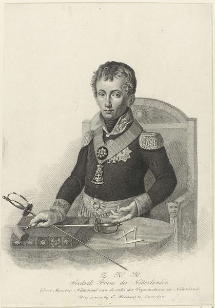 Curator: Here we have what appears to be a print after Orest Kiprensky’s depiction of Grand Duke Nikolai Pavlovich. What strikes you most about this portrait? Editor: The textures, certainly. You can almost feel the wool of the uniform and see the crispness of that lace collar. But tell me more about the man portrayed. Curator: The image reflects the sociopolitical context of the time, it captures a powerful figure. Nikolai Pavlovich would later become Tsar Nicholas I, a controversial figure associated with autocracy. It’s fascinating how the image portrays the subject as almost romantic, in stark contrast with his political image. Editor: Interesting point. I was also drawn to the details of the printing, and the social implications of reproducing images via print. It provided wider distribution than a unique painting. What impact do you think that had on shaping his image? Curator: Absolutely, making him relatable. Reproducing images like this democratized representation. Think about its effect on class consciousness and political awareness—images were tools that legitimized power. Editor: You see power; I also think about craft. Look at the hatching and the clear evidence of manual labor etched into this printing plate. It seems at odds with portraying such a man of power. Curator: Exactly, that contrast invites a reading of the labor relations that sustain the elite. Art-making, then and now, involves multifaceted power dynamics. Editor: Well said. This brief overview has certainly provided insight into the material practices involved in creating this portrait of a complex man, both historically and materially. Curator: Agreed. Thinking about art as a product of both social forces and individual agency expands our understanding of how portraits can reflect identity and power.