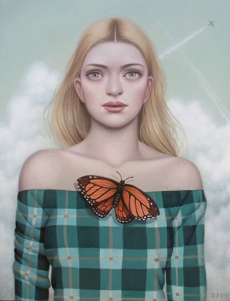 Curator: Let’s take a look at "Voice in the Wilderness" by Sarah Joncas. Immediately, I'm struck by the somewhat mournful feeling. What's your take? Editor: It's quite evocative, isn't it? The deep blues and greens contrasted with her bright red hair are so striking. Speaking materially, the textures achieved with oil paint here—the soft, almost glowing skin versus the coarse knit of the sweater—show the artist’s skillful handling of the medium. I imagine there’s quite a bit of layering and glazing at work here. Curator: Definitely. And I think that material contrast lends to its deeper meanings. The forest surrounding the figure hints at something primeval, and the knitted sweater—likely mass produced—places her firmly in a modern context. Do you think the artist contrasts her materials in a conscious way, imbuing these modern materials and fabrics in a primordial setting with tension? Editor: Possibly. The sweater feels almost like armor here, protecting her from that wilder space. Iconographically, red hair has had quite a history. Think of its association with magic, witchcraft, passion. Against that cool-toned backdrop, it burns intensely. It definitely adds to the symbolism. Curator: Absolutely. I am especially interested in how Joncas's utilization of what appears to be an oil medium can either convey its past ties and histories in High Renaissance Portraiture, and also the more contemporary use of materials within illustration. Perhaps Joncas wants to position her figure at odds, like an allegory, but perhaps as a product in consumer culture. It poses more questions than it answers! Editor: Precisely. The leaves woven throughout her hair almost echo classical depictions of Daphne, the nymph who transforms into a tree. Yet, there’s also something very current about the figure’s gaze. It makes us wonder about feminine power in a contemporary setting. It draws from recognizable narratives but remains so very open-ended. It leaves us contemplating themes like innocence and self discovery. Curator: And it challenges our conventional reading of production! Thank you, that was most enlightening! Editor: My pleasure. The journey into visual symbols and how their significance shifts is always compelling.