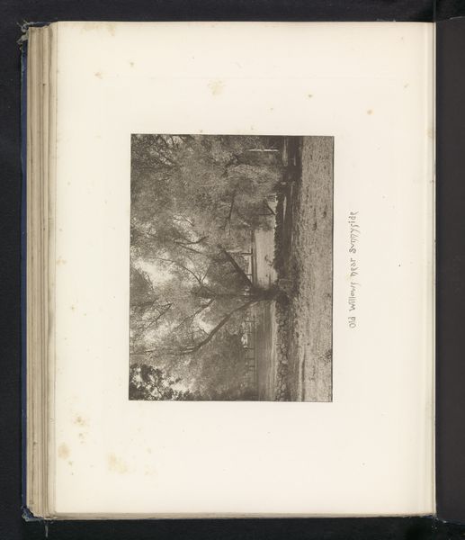 Curator: Before us, we have a cityscape photograph called "Stadsgezicht op Angre," taken before 1902, captured anonymously. It gives us an evocative look into a past landscape. Editor: My first thought is how stark the contrasts are, particularly between the building materials and the trees. It creates almost a study of textures, a tactile experience of a time long past. Curator: Given its age, the print offers an important perspective on early photographic techniques, where mastering the print process would’ve been critical to achieving a high quality final product. Think of the social impact, bringing previously exclusive landscape artforms to broader, more accessible audiences. Editor: Absolutely, and I’d add the work likely captures a moment of considerable social and political shift, specifically industrialization impacting daily lives, rural or not. I am also reminded that the location and artist are, essentially, invisible within traditional art historical contexts, obscuring not only identity but historical presence as well. Curator: Anonymity of the photographer pushes me to focus on the physical creation and purpose of such a print. It makes me wonder: what kind of camera and printing methods were used to capture that sort of textural range and resolution at that moment? Was this an attempt to capture history, or simply for the aesthetics and sales to be mass produced? Editor: Maybe it served multiple purposes. The print provided information and perhaps stirred emotions as well. How did urban/rural dynamics create societal values, and how might have gender or ethnicity impacted the scene being created? Such factors aren't just interesting details; they change the very meaning embedded into images such as these. Curator: Focusing on the artistic work as an artifact shows that something was created during that time using specific means to reflect not just aesthetics but also societal expectations as art democratized and started becoming easier for average persons to get. Editor: Exactly. Art wasn't simply hung inside fancy parlors; it impacted the material lives of society, representing history from many potential voices. Seeing that impact reminds us how art creates social transformation, pushing traditional bounds to tell numerous, interlocking narratives. Curator: Thank you; examining materials offers insight into technological and societal impacts present during their initial construction and eventual dispersal throughout various locations/social interactions. Editor: And seeing it provides a powerful lens on social justice, remembering the work that happened and lives impacted behind-the-scenes during eras we often discuss.