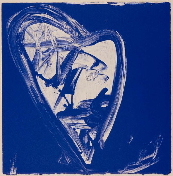 Editor: Here we have Edvard Munch’s "Kiss IV," a woodcut print from 1902. The first thing that strikes me is how the figures seem almost melded together, consumed by something… but what, I wonder? What do you see in this piece? Curator: I see a profound commentary on the societal constraints placed on intimacy and connection, particularly at the turn of the century. Munch, an astute observer of the human condition, depicts not just the act of kissing, but the psychological complexities inherent within relationships. What is the role of society’s gaze in determining what is and isn’t permitted? Editor: That's interesting. I was so focused on the merging of the two figures. I hadn’t considered the external forces acting on them. Curator: Notice how the lines of the woodgrain almost trap the figures. Consider the material itself, wood. It is, on one hand, organic, symbolizing life, but it's also rigid, solid – mirroring the stifling norms around sexuality and gender roles at the time. What tensions do you think these contrasting ideas might highlight? Editor: I suppose it shows how nature, the organic merging of two beings, is at odds with the rigidity of societal expectations. Like they are being boxed in... by norms. Curator: Precisely! Munch's symbolism encourages us to question how structures, both physical and societal, can simultaneously nurture and suffocate our deepest human desires. To what degree does art offer agency when oppressive forces dominate reality? Editor: It offers a space to question the oppressive forces by representing alternative or imagined realities. Thank you. I see it so differently now. Curator: My pleasure. Hopefully these sorts of exchanges empower and motivate change, however incremental, that chip away at the rigidness you mention, to reveal something a bit more loving.
