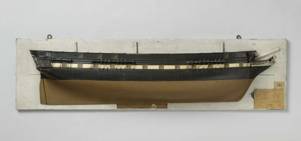 Editor: Here we have what appears to be the elegant hull of a ship. The 'Half Model of a 12-Gun Brig,' dating back to the 1840s, sculpted meticulously from wood. I'm immediately struck by its sleek, almost streamlined form. How do you interpret this piece? Curator: Ah, it speaks of journeys, doesn't it? Think of this not just as a static object but as a frozen moment of potential. A half-model like this was often used by shipbuilders, a tangible representation of their design before committing to the full vessel. It’s a promise of speed and strength encapsulated in wood. Do you see the way the lines flow, almost like a poem? Editor: I do. The wood grain adds a sense of movement, even though it's stationary. It almost feels alive. Was it common to treat these models as art objects back then, or was their value purely functional? Curator: A fascinating question. Function certainly came first, but craftsmanship often elevates utility to art. These models weren't always hidden away in shipyards. They could be proudly displayed, symbols of naval power and national pride. They're a bit like architectural renderings, don't you think, previews of grandeur? There's a satisfying minimalism in the materials. Editor: I never considered it from that angle, thinking of it as a prototype displayed in public. It makes sense considering the time period, and that adds to the artwork's appeal. It brings a deeper context. Curator: Indeed! So, next time you see a ship, think back to this humble half-model, a whisper of history and human ingenuity made manifest. These items can be a portal to an amazing moment in maritime and craft history. Editor: I definitely will! I'm starting to appreciate how much a seemingly simple object can reveal about the past. It definitely provides a lens into naval design that you simply would not find otherwise.