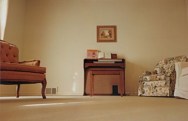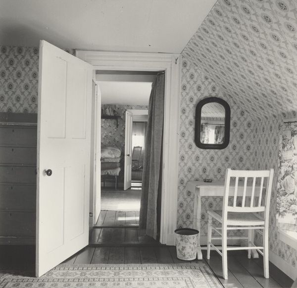 William Eggleston captured this moment in Eudora Welty's kitchen with a keen eye for the still life of everyday life. Dominating the composition, the draped curtains frame the window like a stage, a motif resonating with the theatrical curtains of Renaissance paintings, which separate the sacred from the profane. Consider the table, laden with jars and domestic objects, reminiscent of a Dutch vanitas still life, each element hinting at the passage of time, the brevity of life, and the allure of worldly pleasures. The window, acting as a portal, evokes an emotional yearning to the outside, a common theme in Romantic painting. The gaze is directed towards the light, an illuminating force that reappears across art history and cultures, symbolizing hope, knowledge, and divine presence. Such juxtapositions reveal how the mundane is interwoven with profound cultural symbols. The subconscious allure of these symbols lies in their ability to evoke collective memories and unconscious associations, engaging viewers on a deeply psychological level.