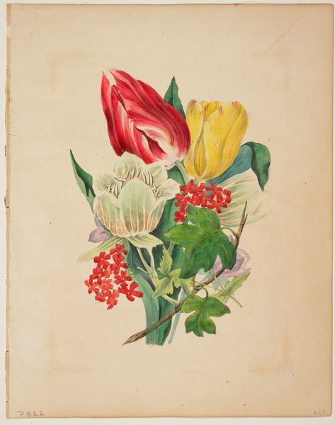 Mrs. E. W. Wirt’s “Bouquet of Trumpet Vine” is a watercolor on paper. The effect of the watercolor is delicate, almost ephemeral. Think about how the paint is applied. It is translucent, allowing the whiteness of the paper to shine through. You can sense the artist layering thin washes of pigment to build up the forms of the flowers and leaves. This technique requires great control. Each layer must be applied carefully, with the artist anticipating how the colors will blend and interact. The level of skill speaks to a tradition of female accomplishment. Often excluded from formal artistic training, women were encouraged to pursue accomplishments like watercolor painting. This allowed them to develop their artistic talents within the domestic sphere. As you admire the detail in the flowers, consider the labor and skill involved, and how that creative work has historically been valued. It invites us to reconsider traditional distinctions between art and craft.