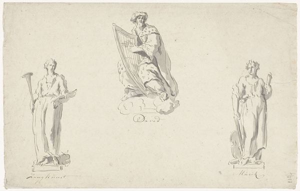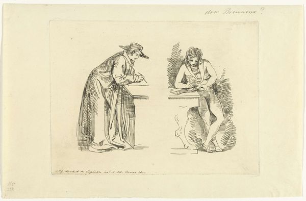 This is Pieter Bartholomeusz. Barbiers’s ‘A man and woman, half-length’ made with pen in grey. Barbiers lived through a period of immense social upheaval, shaped by Enlightenment ideals and the rise of revolutionary sentiments. This piece offers a glimpse into the artist’s perception of gender roles and societal expectations during a transformative time. The woman, adorned in what appears to be classical garb, is positioned demurely, her gaze averted as if to represent modesty. Meanwhile, the man is clinging to a wooden beam, his posture suggesting labor or perhaps a struggle. Both figures are rendered in half-length. These choices raise questions about the artist's intent and the messages he sought to convey about the human condition. The contrast between the two figures invites us to consider the emotional dimensions of gender, class, and identity. The artwork offers a chance to reflect on the complex interplay between personal stories and broader societal issues.