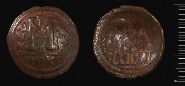 Curator: Here we have a "Coin of Tiberius II," a bronze coin minted during his reign. It is part of the Harvard Art Museums collection. Editor: It feels like such a humble object, yet it carries the weight of an entire empire. The oxidation evokes a sense of decay and lost power. Curator: Precisely. These coins, though small, were tools of imperial power, disseminating the emperor’s image and projecting authority. The iconography itself functioned as propaganda. Editor: I'm drawn to the persistence of Roman symbols adopted across many cultures. The portrait, however worn, still conveys the ideal of leadership, even now. Curator: And we must remember how this “ideal” intersected with issues of class, gender, and privilege. Coins like these remind us how power is both constructed and circulated within a society. Editor: Absolutely. It's remarkable how an object meant to represent enduring power can, over time, speak more eloquently about the transience of empires and the enduring power of symbols.