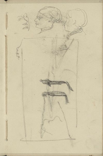 Curator: Looking at this rather subdued drawing, "Salontafel" as it's known, immediately evokes a sense of functional art. The rough graphite lines suggest a utilitarian purpose over purely aesthetic ambitions. Editor: It strikes me as more skeletal than functional, actually. The sparseness of the line work and the visible structural underpinnings almost reduce the table to an abstract geometric study, like an architectural sketch, where material stability feels provisional. Curator: Precisely. Crafted by Gerrit Willem Dijsselhof at some point between 1876 and 1924, the piece is primarily executed in pencil and graphite on paper, quite minimal. Do you see any societal commentary woven through this aesthetic economy? Editor: Potentially. The period when it was made, roughly spanning the end of the 19th and early 20th centuries, was characterized by societal shifts. Could the artist, in reducing the coffee table to its essence, reflect anxieties about shifting class dynamics or the rise of industrialization challenging the role of traditional artisans? Perhaps the bareness gestures toward new functional ideals of furniture, away from ornament? Curator: Intriguing speculation. But I lean toward a more direct appreciation of the visual mechanics. Note the play between vertical and diagonal lines, creating tension within the framed composition. And what about the artist's choice of diamonds; how can semiotics provide context to these central components of design? Editor: Interesting! From a semiotic point of view, the diamonds introduce the possibility of something deeper. Historically, they carry varied symbolism—wealth, risk, purity… Was Dijsselhof commenting on societal values associated with objects of daily life? Curator: I agree it brings up thought-provoking possibilities and connects the intimate object to grander conversations. A final contemplation reveals an intriguing visual experience. Editor: And for me, how historical awareness can augment appreciation. This table contains both utility and meaning.