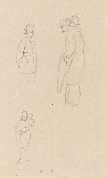 Editor: Here we have John Singer Sargent’s "Head and Figure Studies; verso: Women Working." It’s a graphite on paper sketch, and it feels like a glimpse into everyday life, almost like a street photographer's candid shots. What stands out to you in this piece? Curator: It’s a lovely, intimate peek into Sargent’s process, isn’t it? I find myself drawn to the inherent rhythm, the almost musical repetition of figures engaged in labor. It's like a visual poem about the dignity and quiet beauty of ordinary work. Do you feel the same? Editor: I do. It's like he saw poetry in the mundane. I wouldn't have expected that from Sargent. Curator: Exactly! It challenges our expectations, and maybe that’s the point. Art should always ask questions, not just provide answers.