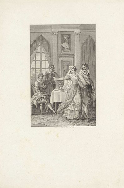 J.B. Clermans made this engraving called 'Albrecht Beiling saying goodbye to his wife and child, 1426', although it may not have been made in that year. It shows a man, presumably Albrecht Beiling, bidding farewell to his family. This image creates meaning through the visual codes of the time, depicting a scene of domesticity intertwined with duty. We can imagine that the culture of 15th-century Europe, with its emphasis on chivalry, warfare and dynastic succession, strongly influenced the artwork. The image also creates a strong sense of emotion, particularly with the woman and child who are seen to be in distress at the departure of Albrecht. To better understand this artwork, we could research the historical context of 15th-century Europe and the history of the Beiling family. Art history emphasizes that artworks are contingent on social and institutional contexts.