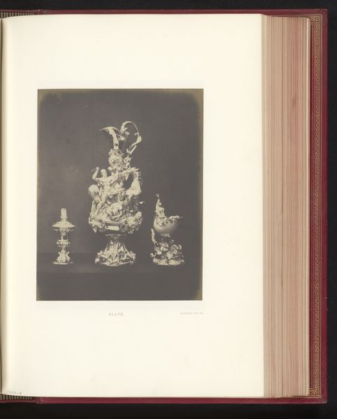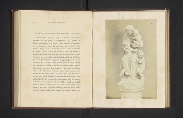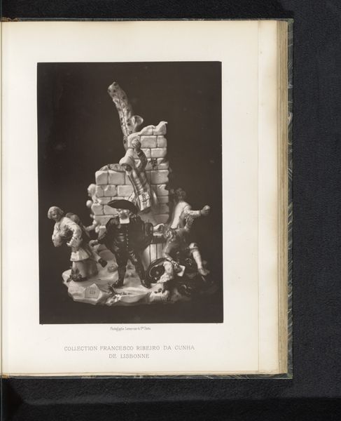 Editor: We're looking at "Sculpture with three figures, a sheep, and a dog," made before 1884. It's currently held at the Rijksmuseum. The whole arrangement feels incredibly theatrical, almost like a tableau vivant. What strikes you about the sculpture’s composition? Curator: Indeed. Notice how the artist uses a pyramidal structure to arrange the figures. The central figure, elevated and adorned, acts as the apex, drawing the eye upward. Consider how the cascading forms of the headdress and wreath echo the drapery, creating a continuous visual flow. The light and shadow interplay reinforces this verticality. What compositional choices led to this unified image? Editor: So the upward flow of the composition contributes to the theatrics that caught my eye. It’s also very… balanced, despite the different activities each figure is engaged in. Do you see symbolism in this piece? Curator: One cannot ignore the balanced structure and repetition of certain patterns that echo themes of purity and bounty from antiquity. Ask yourself, does the idealized symmetry contribute to a particular meaning that transcends a simple grouping of figures? For example, do the meticulously rendered drapery and classical contrapposto stances hint at a deeper, perhaps moral, narrative? The tension arises from their relative stillness despite the density of objects and poses that suggest some type of impending action. Editor: I see what you mean about the balanced symmetry implying certain thematic ideas. Focusing on the artistic choices does illuminate how meaning is conveyed through form. Curator: Exactly! Deconstructing the elements allows us to truly engage with the artist’s intentions and craft. It gives us a window into understanding how material can speak volumes without ever saying a word.