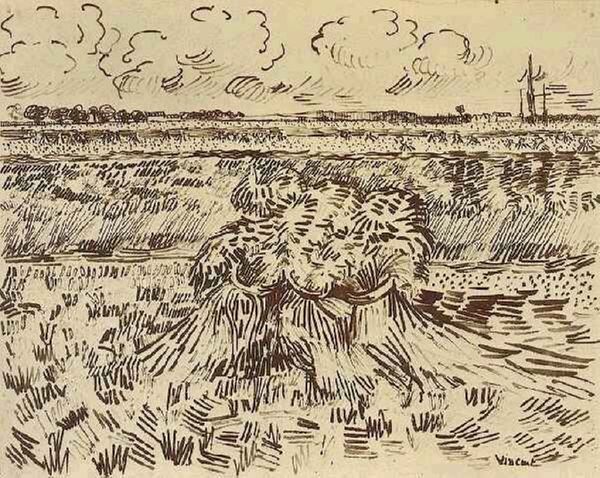 Curator: We are looking at "Peasant Woman Digging," a graphite drawing created by Vincent van Gogh in 1890. Editor: The first thing that strikes me is the palpable sense of toil, the weariness etched into the figures' posture. You can almost feel the grit and sun beating down. Curator: Absolutely. It evokes a deep connection to the land. Van Gogh, throughout his career, consistently returned to images of peasants working the soil; to him, these laborers were emblems of humility and a vital link to a simpler existence. This image ties in nicely with themes of land and struggle throughout art history. Editor: Right. And that’s despite his often idealizing these lives. These figures carry so much symbolic weight, perhaps revealing more of Van Gogh's own yearning than portraying these realities in an utterly unfiltered fashion. Is it ever really "folk art," or is it filtered through a bourgeois lens? Curator: The simplification of form is crucial. There’s a universal quality; you see echoes of Millet, perhaps a reaching toward archetypes embedded deep in collective memory related to survival and work. Editor: And this emphasis on posture, on the sheer physical effort… It highlights labor's alienation and dehumanization under specific conditions of late-19th-century agricultural work. Are we meant to glorify, or analyze the conditions themselves? Curator: He’s seeking something beyond the literal—almost elevating daily acts into a form of humble heroism; it is indeed a genre painting but infused with his highly subjective, internalized viewpoint. Editor: I see the point, I think, this goes into how art gives dignity, and what it means for this artwork to make people empathize across very different stations in life. It reveals perhaps not an "objective" truth about peasant life, but a profound desire, a wish for a connection beyond words. Curator: Precisely. What strikes me most now is how the symbols within it connect us to cultural continuity—despite these nuanced tensions about representation. It’s art creating cultural memories, perhaps as much for ourselves, the viewers, as it was for Van Gogh himself. Editor: I think ultimately, Van Gogh, even with his idealizations, reminds us that labor is always attached to specific bodies, specific identities—all working to survive and change the soil around them.