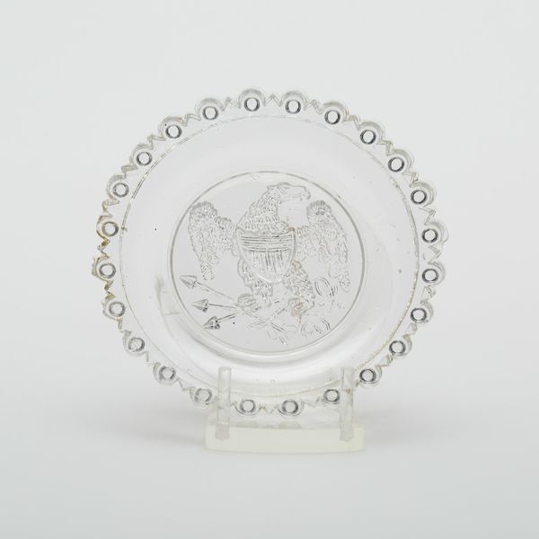 This anonymous cup plate was probably made in the United States out of pressed glass. Cup plates became popular during the 19th century with the rise in tea and coffee consumption. They were used to hold a cup while a person drank from their saucer, as the beverage was often poured into the saucer to cool before drinking. Given the era and the imagery, this particular plate may have had something to do with the rise of American nationalism. The central design features an anchor, surrounded by a ring of stars. We might ask: does this symbolize the importance of the American navy in protecting the expanding nation? Does it evoke a sense of maritime power and trade? Understanding the cultural significance of such an object involves researching the economic, political, and social history of the time, to better understand how symbols like these functioned within American society. In doing so, we can better understand the values and ideologies that were being promoted through everyday objects.