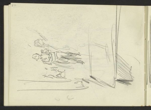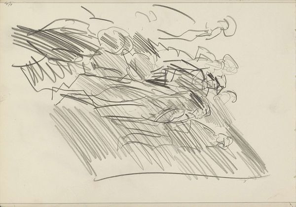 Curator: Welcome to the Rijksmuseum. We’re standing before Isaac Israels’ “Studieblad met gitaarspelers,” or “Study Sheet with Guitar Players,” a work dating from around 1930 to 1934. It's rendered in pencil and ink, giving it a wonderfully immediate feel. Editor: Immediate is right! It looks like a page ripped right from the artist’s personal sketchbook. The figures are so loosely sketched, almost ephemeral, yet there’s a sense of capturing a fleeting moment. There is something unfinished that seems particularly vulnerable, even voyeuristic about it. Curator: Israels had a fascination with capturing everyday life, and that’s certainly reflected here. Study sheets like this allowed artists to rapidly explore form and composition. We can examine not just *what* Israels was drawing but also the process *how* and *why*. Here, Israels presents some women sitting and holding their guitars. It almost has an intimate quality like we're peaking into their lives. Editor: Definitely. And, thinking about the period, the interwar years, it prompts me to consider the position of women and leisure. Was guitar playing a means of expression, perhaps even rebellion, against the limited roles available to them? It raises so many questions. Did the guitar represent a path toward more freedom? Curator: That's a compelling reading. Social context is everything and musical expression can serve as an indication for greater expression within a woman's social and economic potential at that period of time. But the roughness also adds an aesthetic consideration, don’t you think? Editor: Absolutely. There's a raw honesty in the sketch-like quality. Each stroke exposes something, an intentionality, perhaps to evoke emotion? The fact that they are guitar players evokes performance of all types. Not just musicians in the 1930's but performing the ideal for their day to gain rights that even they, maybe, are just discovering. Curator: Yes, it truly collapses time and space into a few strokes. One final thought on it is in thinking of his own position as an artist during a shifting time in art history. Israels’ style, rooted in Impressionism, here takes on a modern sensibility in this sketchbook form of his creative work. Editor: This reminds me to be aware of everything happening around us. You never know who will take that inspiration and make artwork, or advocate to improve another life. Thank you. Curator: Thank you for sharing, goodbye.