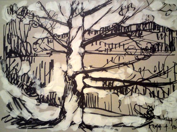 Richard Sussman made this small painting, Summer Day, with an unknown medium on board. It's a really sweet little piece! I see a dog sleeping under a tree, and I love how Sussman used these washy colours, like he built up the image through layers of watercolour. I’m fascinated by the way the paint seems to float on the surface of the board. It gives the whole scene this dreamlike quality. Look how he's outlined the dog in the foreground, it's almost a golden shape, but it feels like a soft glow, like it's part of the landscape itself. The lines of the buildings are not quite straight and the tree seems to lean into the scene, as if the landscape itself is alive and breathing. You know, Sussman reminds me of Milton Avery, with the way he reduces the landscape to these simple, colourful shapes. But there's also something very personal about his art, like he's not just painting what he sees, but how he feels.