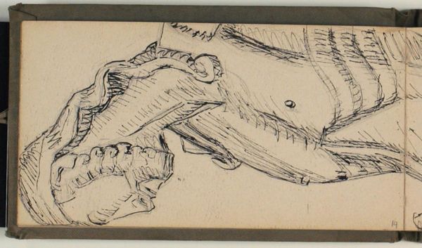 This is a study of a quatrefoil at the end of the cross arm on the Egebjerg crucifix, drawn by Niels Larsen Stevns, most likely in the late 19th or early 20th century. Executed in pencil on paper, the artist documented the lion, a symbol of the evangelist Mark, with loose and energetic strokes. Stevns’ choice of a humble material like pencil on paper is significant, as it underscores the drawing's status as a study rather than a finished work of art. The spontaneous, almost casual approach allowed the artist to quickly capture the essence of the medieval carving. What might have drawn Stevns to this particular detail? Was he interested in the religious symbolism, the craftsmanship of the original crucifix, or perhaps the way that folk art traditions can be transformed into fine art? By focusing on the material and process behind this study, we can better appreciate the artist's engagement with both the subject matter and his own artistic practice. It blurs the lines between observation, documentation, and artistic interpretation, inviting us to reconsider the boundaries of art itself.