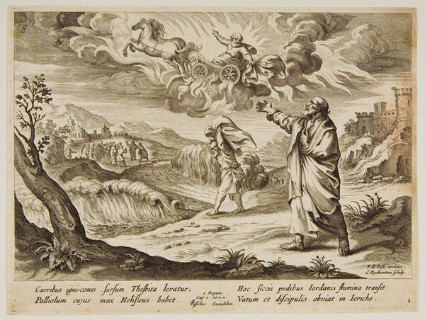 Editor: This is Jacques Callot's print, "Guardian Angel." It's small, only a few inches, and the fine lines create a sense of delicate protection. How would you interpret the role of imagery like this during Callot's time? Curator: Considering the socio-political context, images like this reinforced the Church's influence and provided comfort during times of widespread upheaval. Prints made art accessible, but also served a propagandistic function. Do you see any element suggesting that? Editor: The angel's guiding hand seems less about forceful control and more about gentle encouragement, leading by example. So, perhaps it is more about care. Curator: Exactly! It reflects the Counter-Reformation's emphasis on personal piety. Prints were tools that shaped public perception, influencing religious and social behaviors. Editor: That's fascinating! I hadn’t considered its impact on public behavior at the time.