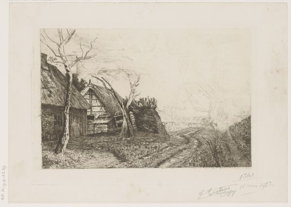 Charles Adams Platt etched this plate depicting “An Old Settler," a humble dwelling, sometime near 1933. Note the winding path that leads the eye, beckoning us toward the home. Paths like these recur throughout art history as metaphors for life's journey. Consider how they appear in medieval illuminated manuscripts, guiding pilgrims toward spiritual enlightenment, or even in van Gogh's landscapes, reflecting the artist's tumultuous inner state. Here, the path is not direct, suggesting the unpredictable nature of existence, a sentiment echoed in German Romanticism. The home, a symbol of shelter and the self, is softened by the artist's hand. But like any symbol, its meaning is fluid. Think of how Freud used houses as metaphors for the human psyche, with hidden rooms representing repressed desires. The enduring power of "An Old Settler" lies in its ability to tap into our collective memory, evoking a sense of longing, and the cyclical nature of human experience.
