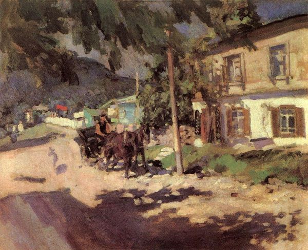 Editor: Here we have Gustave Caillebotte's "Garden at Yerres," painted in 1876 using oil paints, en plein air. The vivid red flowerbed in the foreground immediately grabs your attention. It's interesting how the paint is applied so thickly. What stands out to you? Curator: I notice the deliberate composition. Consider how Caillebotte’s brushstrokes function not just to depict the scene but as units of labor themselves. The individual, almost mechanical, application of paint points to the burgeoning industrialization affecting artistic production at the time. Editor: That’s an interesting point! I hadn’t considered the act of painting itself as labor. How does that perspective change our view of the art? Curator: It redirects our focus from mere representation to the materiality of the paint and canvas, emphasizing the artist's physical involvement. It's not just a "garden;" it's an object produced with deliberate effort. We see here an engagement with commodity culture where artistic skill itself becomes a valuable material. Editor: So, he's making a statement about art's role in a changing industrial society? Curator: Precisely. By highlighting the tangible, material nature of the painting, he subtly critiques the traditional romantic notions of artistic genius. Consider also, what sort of labor and capital would be necessary to maintain the garden? And what does this say about social class at the time? Editor: Wow, I never would have considered that! The painting now seems more complex, almost like Caillebotte is engaging with societal shifts through his technique and subject. Curator: Exactly! By seeing the artist's hand and considering broader historical conditions of the time, we perceive Impressionism in terms of making and the circulation of materials and capital, which really reshapes our appreciation for the movement. Editor: Thanks. I’ll never see Impressionism the same way again!