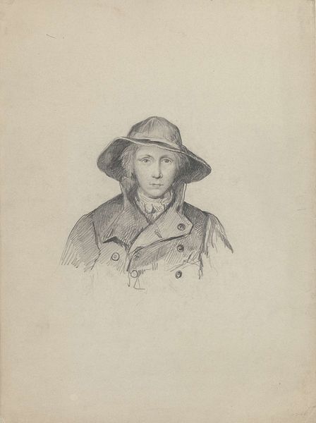 Editor: So, this is "Portret van Klaas Bording" from 1849, made with pencil. There's a gentle quality to it. What's striking to me is how informal it feels, almost like a sketch from life. What do you see in it? Curator: What I see is a visual document rooted in a specific social context. This portrait, while seemingly straightforward, is an opportunity to delve into the identity and the potential politics surrounding its creation. This era saw increasing interest in depicting individuals from various social strata, though through whose eyes and for what purposes? Editor: That’s a great point, the sitter's clothes could tell a story about class. Was art becoming more democratic? Curator: Precisely. And think about the choices inherent in creating a portrait like this. Who was Klaas Bording? What was his relationship to the artist? Was he from a marginalized group? The seeming simplicity invites deeper questions about representation, power, and visibility. Editor: So, we need to consider what was going on at the time in society. Were there discussions of class and representation that might have influenced this piece? Curator: Absolutely. Consider also the visual language: the soft lines, the direct gaze. How do those elements work to either reinforce or subvert the power dynamics inherent in portraiture? Who has access to art? Editor: It's like you're reading it as a conversation between the artist and society. Curator: Indeed. And it's a conversation that continues today. By situating this artwork within those historical and social frameworks, we can draw meaningful connections to contemporary dialogues around identity and representation. Editor: I’m definitely seeing this sketch in a different, richer way now! Curator: And hopefully, a more critical one! It encourages us to challenge assumptions and see beyond the surface of artistic representation.