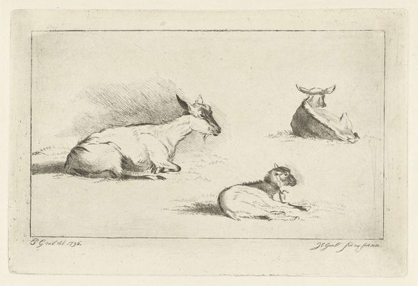 Jacobus Cornelis Gaal created this etching of a reclining goat in the Netherlands in the mid-19th century. The image's apparent simplicity belies the complex relationship between art, nature, and the social order during this period. Landscape art in the Netherlands had long been tied to national identity, reflecting the country’s geography, agricultural practices, and sense of place. Artists often found ways of representing the country's rural character in their work. Gaal, working within this tradition, presents us with a seemingly straightforward depiction of a common farm animal. But what does it mean to elevate the everyday into the realm of art? Is this a celebration of rural life, or is it simply an exercise in artistic skill? To truly understand this image, we can research the economic and social conditions of 19th-century Netherlands, looking into the role of agriculture and the changing relationship between urban and rural communities. Historical societies and local archives can provide invaluable insights. By understanding the context in which Gaal was working, we can begin to appreciate the subtle ways in which art reflects and shapes our understanding of the world.