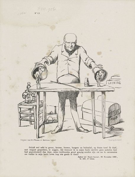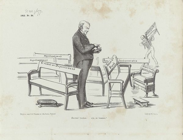 This is a cartoon by Johan Michaël Schmidt Crans from 1865, a period of significant political tension in the Netherlands. It addresses the delayed approval of the national budget, a situation that had significant implications for the country's governance and financial stability. The cartoon depicts a civil servant consumed by his work, perhaps a commentary on the bureaucracy and inefficiencies of the government at the time. His weary posture and the endless paperwork suggest a system bogged down by its own processes. The caption translates to "New Year's memory of an official who has long claimed improvement in fortune," indicating widespread dissatisfaction with the status quo and the desire for change. The humor in Crans' work, typical of political cartoons, is a way to critique the political elite and voice public frustration. This piece captures the emotional toll of political gridlock, a sentiment that resonates even today. It reflects how individual experiences are often intertwined with broader societal issues, highlighting the personal impact of political decisions.
