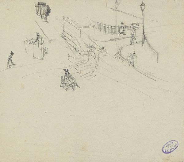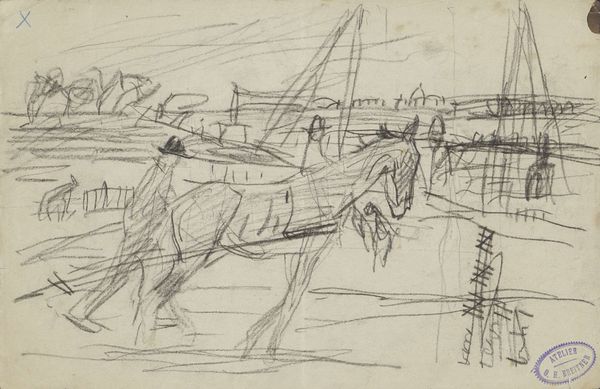 George Hendrik Breitner made this sketch of mounted artillery using pen and ink. Breitner was known for his depictions of Amsterdam city life and military subjects. Although undated, this work likely comes from the late 19th century, a period of significant military buildup in Europe. The image presents a scene of the Dutch military in a casual, almost mundane manner. This approach aligns with Breitner's broader interest in portraying everyday life, devoid of heroic or nationalistic overtones, contrary to the tradition of military art in that time. Breitner's loose sketch style also challenges the academic art standards upheld by institutions and the art market. He instead embraced realism. To fully understand this work, we need to consider the social and political climate of the Netherlands at the time, studying military history, the development of Dutch Realism, and Breitner's biography.