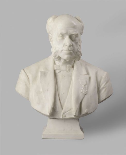 Curator: The play of light across the textured bronze gives it an almost vibrant quality. It seems so... substantial. Editor: Indeed. This bronze sculpture, "William A. Clark" crafted by Sally James Farnham in 1915, captures a powerful figure of the time. Clark, a controversial Montana senator and copper magnate, known just as well for accusations of corruption as for his philanthropy and vast art collection. Farnham captures all the complexity here. Curator: Note the incredible detail—the sharply rendered lines defining the face and hair against the softened drape of his clothes. What is communicated? Editor: I think it shows a determination, not unlike that seen in renderings of industry robber barons during this era. You also cannot ignore the fact that artists began to be impacted by shifts in aesthetic. Early Modernism saw a re-exploration into how the image was displayed with shifts into realism that showcase and impact that shift.. Curator: It’s a very interesting interplay between realism and the changing landscape of artistic expression in the early 20th century. Farnham walks that line with her commitment to accurately portray Clark while clearly also imbuing his essence with the energy of Modernism. It speaks of power and wealth, naturally. A portrait in bronze immediately elevates the subject, situating him within a lineage of important historical figures rendered in similar material. Editor: What intrigues me most is how she used bronze as the best material. This sculpture goes beyond a mere recording of likeness, becoming a comment on the public perception, the legacy that Clark himself worked to cultivate, to the changing socio-political status with new styles to explore its power. Curator: Yes, that tension speaks to the interesting position Clark held in society, and his desire to legitimize that role. Thanks for expanding the impact and historical background that this bronze is so impacted by. Editor: Thank you for emphasizing its design elements, making us all notice the nuances we may pass over.