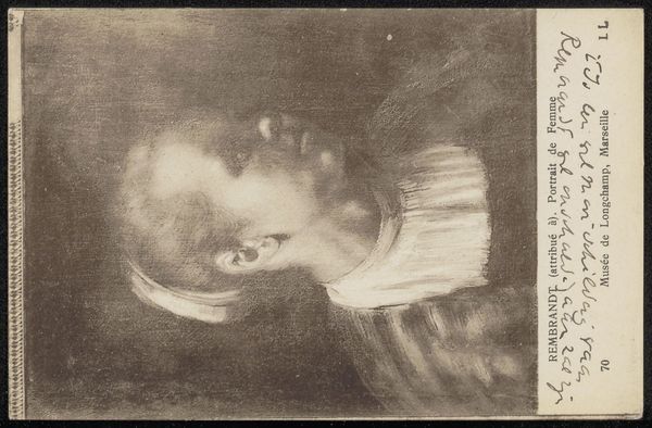 Curator: Welcome, everyone. We’re standing before “Bruidje,” a graphite print made around 1890 by Carel Lodewijk Dake, here at the Rijksmuseum. Editor: My first impression is melancholy, a quiet resignation. The woman's downcast gaze and the monochromatic palette evoke a sense of subdued emotion. Curator: It's fascinating how Dake captured that emotion with such minimal detail. Given the title, which translates to "Little Bride," we can contextualize that downcast gaze. Arranged marriages, limited agency for women, societal pressures of the time…it all suggests a constrained future, right? Editor: Indeed. And even the style itself, which flirts with Impressionism, enhances that feeling. It’s soft, veiled, like a memory fading or a dream deferred. The flowing, almost chaotic lines that surround the woman's form contribute to an aura of disruption. Curator: That chaos speaks to something deeper too. Consider the performative nature of marriage for women in the late 19th century—a performance dictated by patriarchal structures. What symbols can you identify that might tell us more? Editor: Well, despite the title, overt symbols are strangely absent, aren't they? There's no ring visible, no clear indicator of a wedding garment, except for the suggestive contours. It forces us to focus on the internal psychological state rather than external trappings. Curator: Exactly. Dake deliberately withholds. Is it a commentary on the performativity of marriage and female subjugation within a certain timeframe? He gives us a window into the bride's subjective experience rather than confirming outward social expectations. Editor: What strikes me is how little the symbol of the “bride” has changed even though society and its understanding of gender roles have radically evolved since this print was made. Perhaps, at its core, marriage remains an imposition for many, not a dream come true. Curator: That intersection of the personal and political feels intensely relevant. And the tension created between the known symbolism, that of marriage, and the artist’s deliberate ambiguity—creates the work’s powerful tension. Thank you for sharing that insight. Editor: Thanks to you as well. Looking at “Bruidje,” I feel drawn into its visual poem. Despite the sadness, I can’t help but admire Dake's technique of expressing complex states of emotion in a portrait lacking a firm subject or solid symbol.