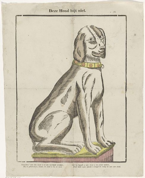 Curator: Look at this lovely artwork by Frank Fumagalli, entitled "Statuette of a Dog," created around 1937 using watercolor and pencil. What's your first impression? Editor: Immediately, the earthy tones and textured strokes convey a handmade feel. It makes me think about the act of carving and shaping, and the kind of domestic space this object might have occupied. It feels like a working-class craft piece. Curator: The image is quite charming; notice how the dog is carrying a small basket in its mouth, a symbol of service or perhaps even cleverness. Throughout art history, dogs represent loyalty and guardianship. What cultural echoes do you find here? Editor: I wonder about the specific materials and tools available to Fumagalli. Was this piece meant to mimic wood carving with inexpensive media? The "statuette" depicted in the watercolor and pencil drawing implies a certain aspiration, maybe touching upon the role of decorative arts in reflecting social standing. Curator: Perhaps. But think about how the texture created by the pencil and watercolor mimics fur and carved wood—a kind of layered symbolism. The basket, seemingly filled with small spheres—perhaps fruit—adds another layer of domesticity and provision. Are there psychological symbols here? Editor: I keep thinking about mass production versus the artist's hand. Does the charm derive from the depicted object itself or from the implied labor, the individual skill on display, particularly during a time when industrial processes became so dominant? Curator: An interesting contrast, yes, this returns me to the statuette as an accessible object that also denotes status. Considering its historical context, during the pre-war years, such symbols of stability might resonate deeply with collective desires. The object almost has a totem-like significance. Editor: Ultimately, seeing the material quality and pondering Fumagalli's process highlights this tension—between genuine artisanal production and just wanting to gesture toward more elevated tastes. It gives this image a real social and historical tension. Curator: Well, viewing the work with a focus on imagery and historical symbols has made it resonate beyond its modest rendering as a symbol for a particular era and mindset. Thank you! Editor: Looking at it with an eye for process really pulls at the material reality and how it reflects taste, class, and manufacture. Fascinating, thanks.