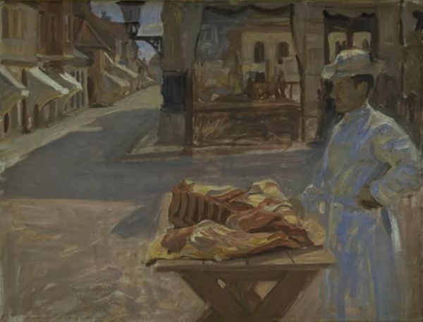 Editor: Here we have Jack Butler Yeats' "Morning after Rain," held in the Tate Collections. The heavy brushstrokes create a somber mood. I’m curious, what does the materiality of this work suggest to you? Curator: Notice how the very application of paint mimics the scene – thick, almost viscous. It’s not just representation; it’s reenactment of the labor of seeing, of weathering the elements. What do you think that says about the artist’s social position? Editor: It emphasizes the working-class experience, perhaps, and the grit of everyday life? Curator: Precisely. Yeats's process becomes a form of social commentary. That is, art isn't just about what's depicted, but also about *how* it is depicted, and *by whom*. Editor: That’s given me a lot to consider; thank you. Curator: My pleasure; it's always rewarding to consider the artist's hand in conveying meaning.