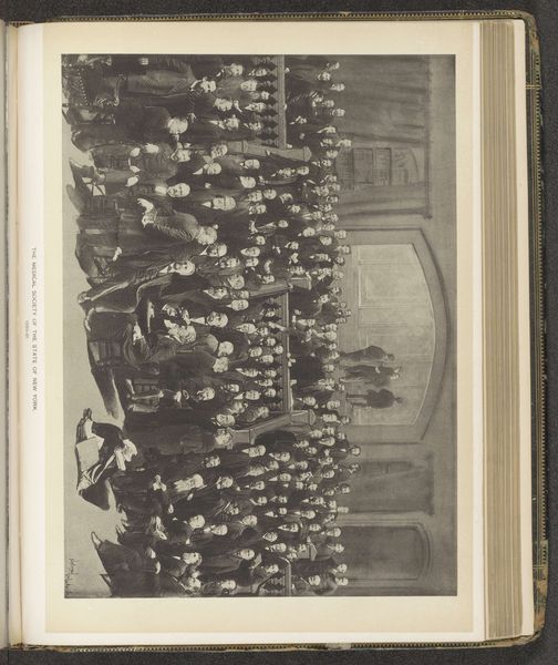 Curator: Here we have a photograph, likely taken around the turn of the century, of the General Faculty at the Tuskegee Institute in Alabama. The photographer is Frances Benjamin Johnston. Editor: Wow, such a powerful image. There's a real sense of solidarity in that group, something both stark and beautiful. Curator: Johnston was commissioned to document the Institute, showcasing its commitment to vocational training for African Americans, a key part of Booker T. Washington's philosophy. Editor: It's amazing how their formal attire, posed against that grand library backdrop, speaks to the dignity and aspiration that defined Tuskegee. It’s a quiet resistance in a way. Curator: Absolutely. Understanding the image demands that we recognize the Institute’s complex position within the racial politics of the time. Editor: Thinking about it, it’s not just a photograph; it’s a statement etched in monochrome, capturing a pivotal moment in American educational history. Curator: Indeed, and it offers us critical insight into the complex history of the Tuskegee Institute and race relations in America. Editor: A visual reminder that progress and perseverance come in many forms.