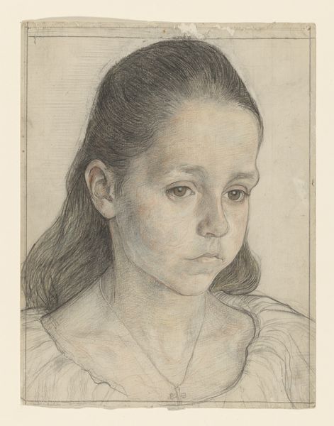 Willem Bastiaan Tholen made this graphite drawing of Péronne Arntzenius as a young girl. Notice how the composition centres on the face, drawing us immediately into the girl's gaze. The soft, delicate lines create a sense of gentle introspection. Tholen masterfully uses light and shadow to model the girl's features. The subtle gradations around her eyes and mouth give depth to her expression, while the looser, more gestural lines describing her hair add a sense of movement. The artist’s technique transforms a simple portrait into a study of form and emotion. This artwork goes beyond mere representation; it’s an exploration of line, tone, and the very act of seeing. Tholen challenges us to consider how a seemingly straightforward portrait can convey so much about the subject's inner life through purely formal means.