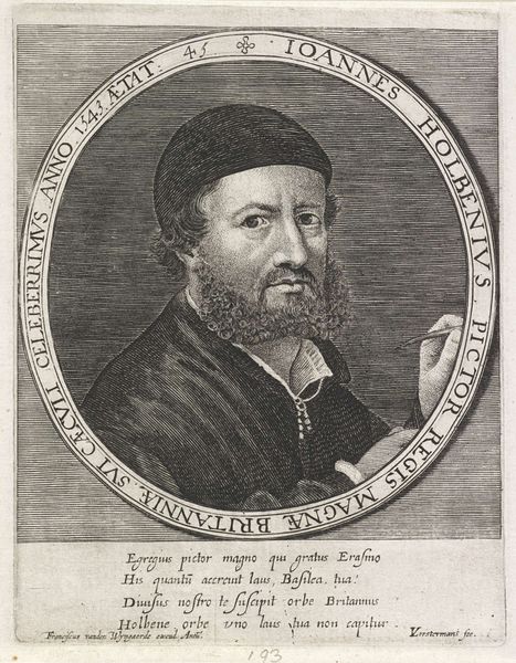 Dominicus Custos made this portrait of Johannes Baptista Montanus using engraving, a printmaking technique dating back to the 15th century. The image is made by carefully cutting lines into a metal plate, inking the surface, and then pressing paper against it. The lines that were cut into the metal retain the ink, creating the image you see. The fineness of the lines suggests the use of a tool called a burin, which requires immense skill to manipulate with precision. See how Custos varies the density of the lines to create tone, and how he describes the texture of Montanus's beard and clothing. Printmaking like this was essential to the spread of knowledge in the early modern period, making images like this relatively accessible. In considering this portrait, it's important to remember the crucial role of skilled labor and material processes in disseminating knowledge and shaping cultural values. The relative ease of reproduction allowed such images to reach a wide audience, and they served as powerful tools for shaping public perception.