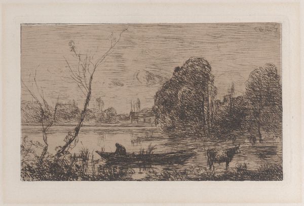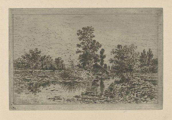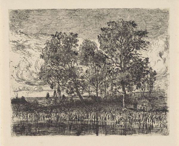 Augustinus Wouters created this etching, "Three Trees on a Shore," using ink on paper. It’s a classic landscape, reminiscent of the Dutch Golden Age, but made in the 19th century. Artists at this time were questioning the role of art and its institutions. Was it simply to replicate tradition, or could it serve a more progressive function? Wouters lived during a period of industrialization, so it's tempting to view this work as nostalgic for a pre-industrial past. However, it’s more likely an exploration of the eternal qualities of the Dutch landscape. We see the influence of the Hague School of painting, which sought to capture the natural light and atmosphere of the Netherlands, but within the more easily reproducible medium of etching. Understanding the art of the 19th century requires us to look beyond the surface of what is represented and consider the social and economic conditions that shaped its production. Museum archives and historical societies can help provide insight into the artist’s world.