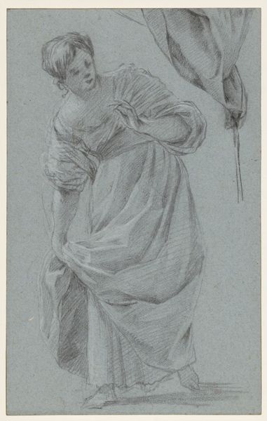 Editor: This is "Eulerpe or Clio," an undated drawing by Jean-Baptiste Greuze at the Art Institute of Chicago, rendered in chalk and charcoal on paper. It evokes a pensive mood with its monochromatic palette and classical figure absorbed in her studies. What are your insights on this artwork? Curator: What strikes me is how Greuze employs this figure, potentially a muse of history or epic poetry, to legitimize artistic endeavor. Notice the strategic inclusion of musical instruments and scrolls, signaling her intellectual and creative domains. It isn’t simply about portraying beauty; it’s about associating art with knowledge and prestige, aligning it with established academic pursuits in a period of significant social and political upheaval. How might its placement in a public museum today reinforce or challenge those initial associations? Editor: I guess displaying it in a museum bestows a sort of authority to Greuze's vision. By placing it within the context of art history, doesn't the museum sort of solidify his claim about art’s significance? Curator: Precisely. Museums are not neutral spaces; they actively shape our understanding of art’s value and its place in the broader cultural landscape. Think about how exhibiting this drawing alongside other works of the Romantic or Academic styles creates dialogues and hierarchies within the collection, further defining the narrative the museum is crafting. Does the drawing speak to contemporary audiences in the same way, or have its meanings shifted? Editor: That’s something to think about! It’s easy to view it through a contemporary lens and forget about the context it was initially made in. Thanks for giving me a different perspective. Curator: Indeed. Considering the socio-political environment is critical. It transforms our appreciation of not just the art, but the institution preserving and interpreting it.