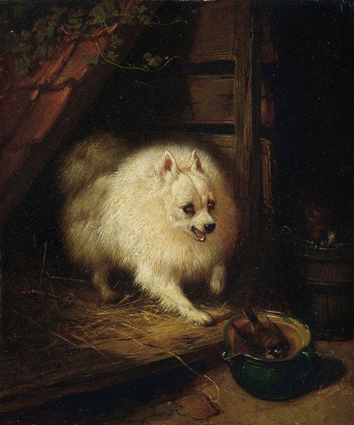 Henriëtte Ronner-Knip painted "A Puppy in a Barrel," depicting a small dog sheltered within the confines of a wooden barrel. The barrel, a symbol often associated with storage, protection, and even a sense of confinement, takes on a maternal dimension here. Consider the medieval "Diogenes in his Tub," who rejected societal norms, or even the tale of Romulus and Remus, sheltered in a basket floating on the Tiber. Here, the barrel serves as a womb-like space. We find this symbolism echoed through time. Observe the dog’s open mouth, a primal, emotive gesture. Such vulnerability stirs within us a deep empathy, a connection that transcends time. These primal images resurface, evolve, and take on new meanings in different historical contexts.